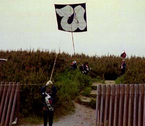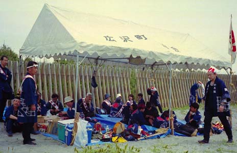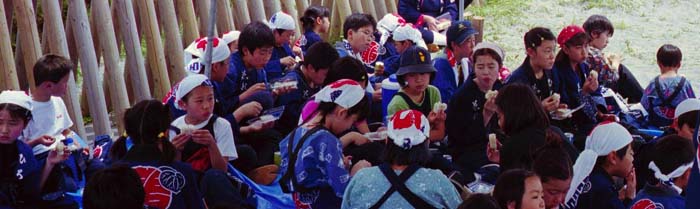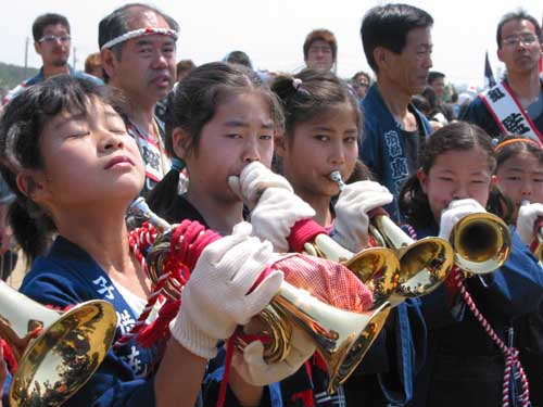5日は子供が凧場に入って凧を揚げます。ラッパ隊も一緒です。