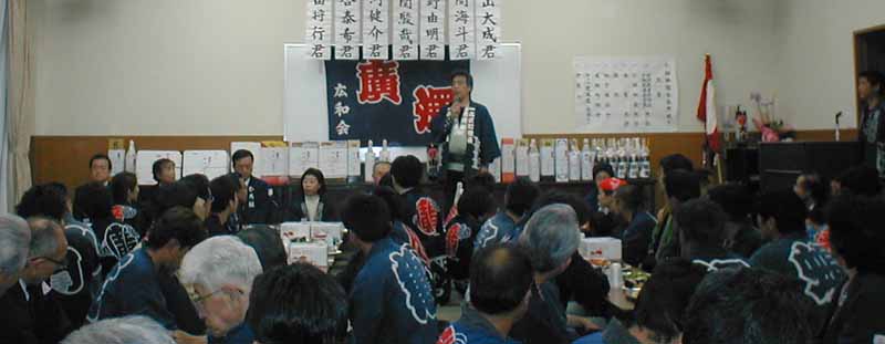 新築なった公民館での会所開きです。広くなったと思いましたが一杯に埋まりました。