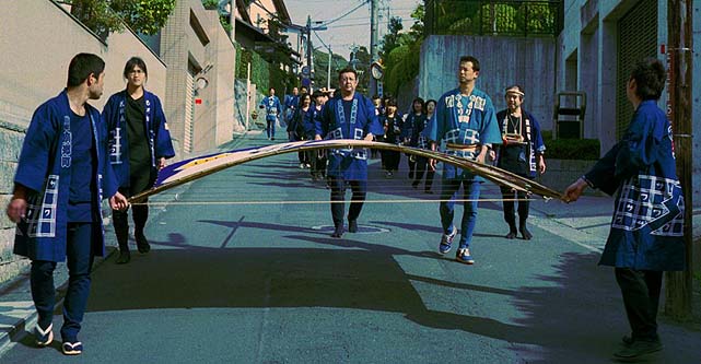糸目付けの為に凧を運搬しています