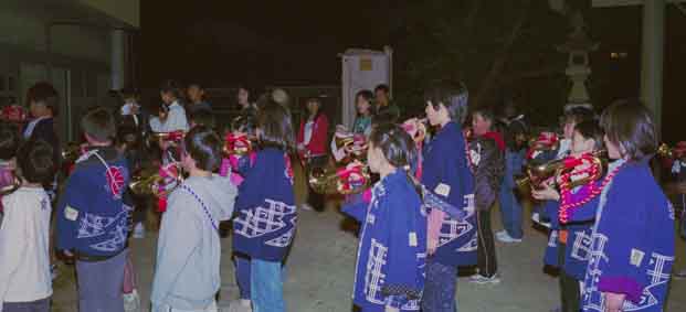 屋台で演奏するお囃子の練習です