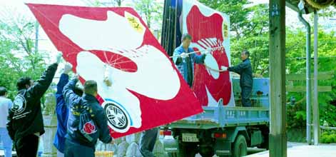 借りている凧置き場へ凧を搬入します