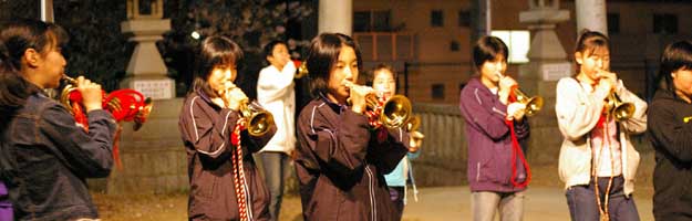 ラッパ隊の練習です。女のお子さんの参加が目立ちます。