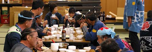 凧上げから「会所」(広沢公民館)に戻ると、おそばが用意されていますので、