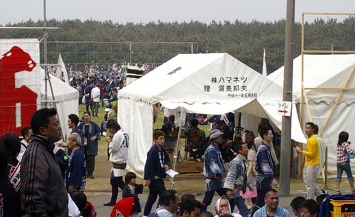 | 今年の陣屋は凧上げ会場の北側でした。陣屋は現場での後方支援基地となります。 |