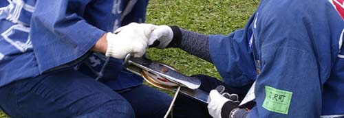 | 手だけでは持ちこたえられないのでこのように体と糸との摩擦を利用します。 /TD> |