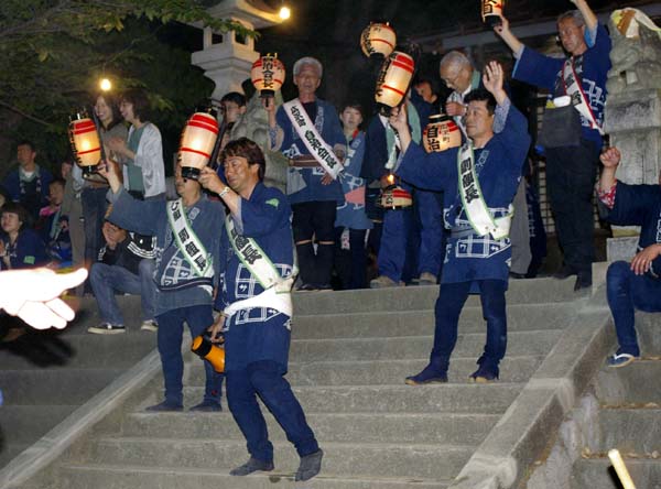 5日の練りを終えて最後に神社で練ります。5日は天気が心配されましたが 持ちこたえたので、三日間フルに動けました。