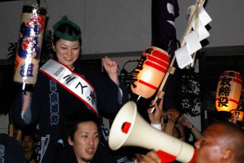 自治会長宅の練りに現れたミスは浜松祭りのお嬢さんです