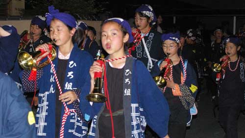 子供ラッパ隊です。昼夜にわたり活躍してもらって今す。