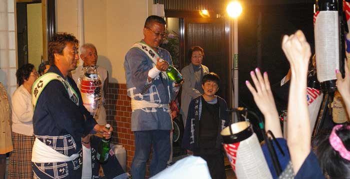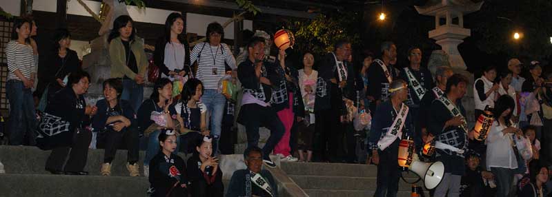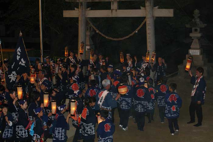 屋台が終わってから練りに駆けつけたお囃子連の子供たちです
