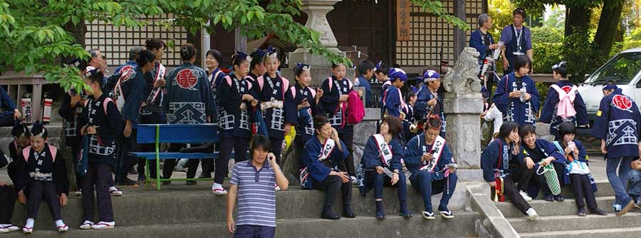 暗くならないと屋台も子練も出ませんので、お囃子連はそれまで遊んでいます。