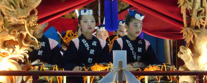 屋台に乗ってお囃子を演奏するときは背筋が伸びます