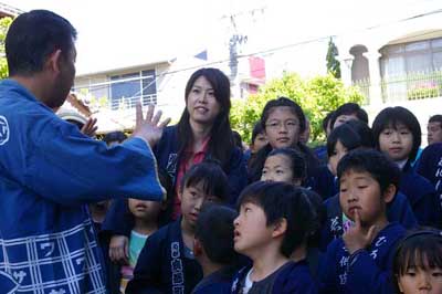 | 初めは公民館の中で練習し、うまくなると外に出て、動きながらの練習になります。今年は男の子が多いそうです。 |