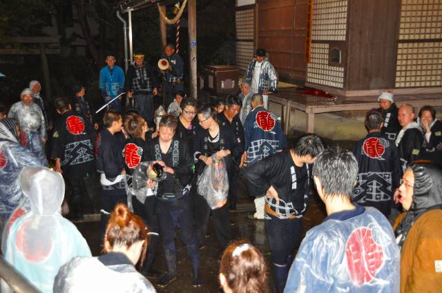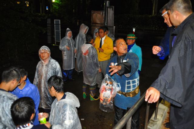 生憎の天候のため、ビニール袋と合羽で雨をしのぎます。